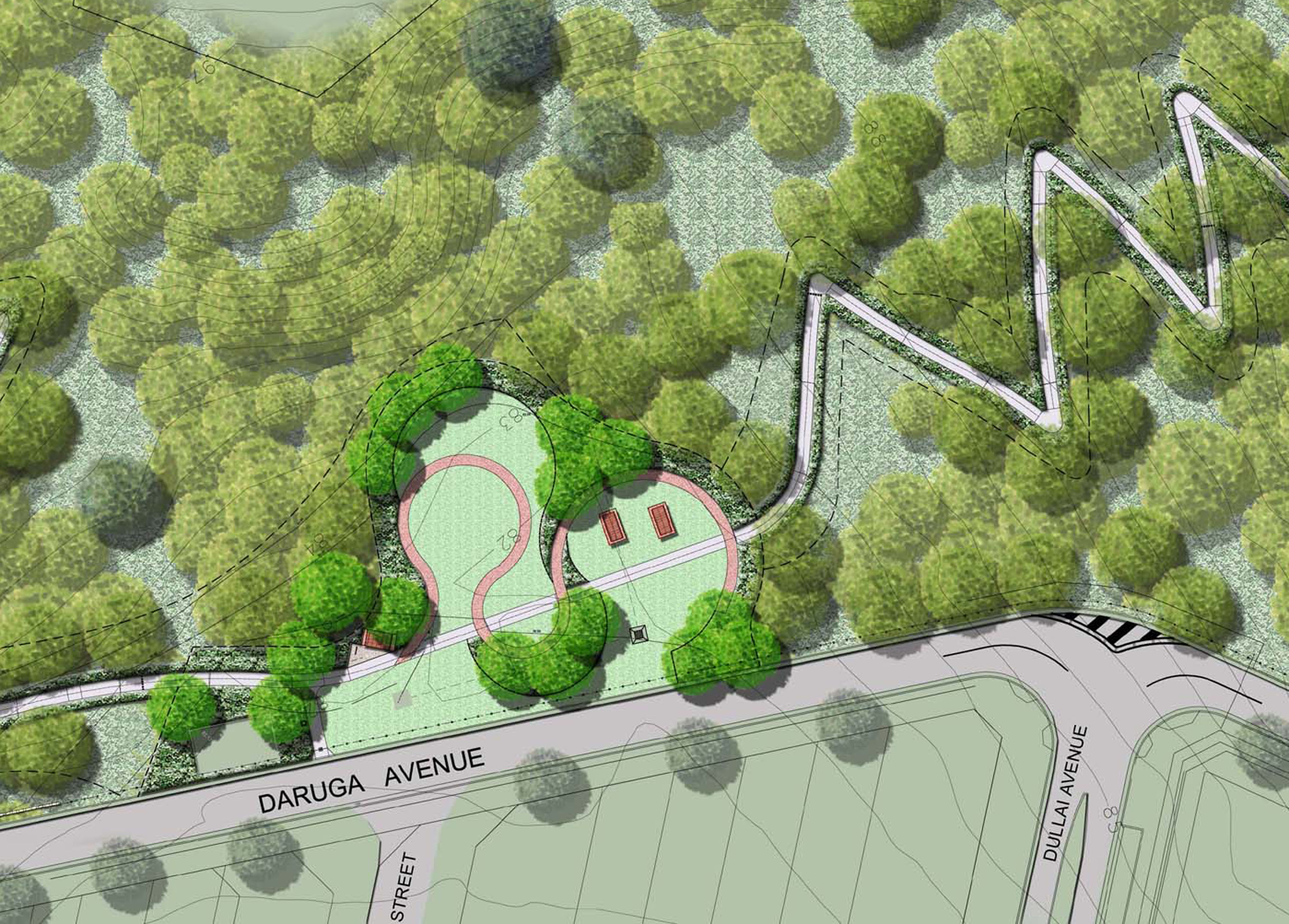 Sturt Noble Associates were engaged to carry out detail design and documentation of this ridgeline reserve and to ensure the design is undertaken in a manner that reflects the sites Aboriginal and European heritage significance.